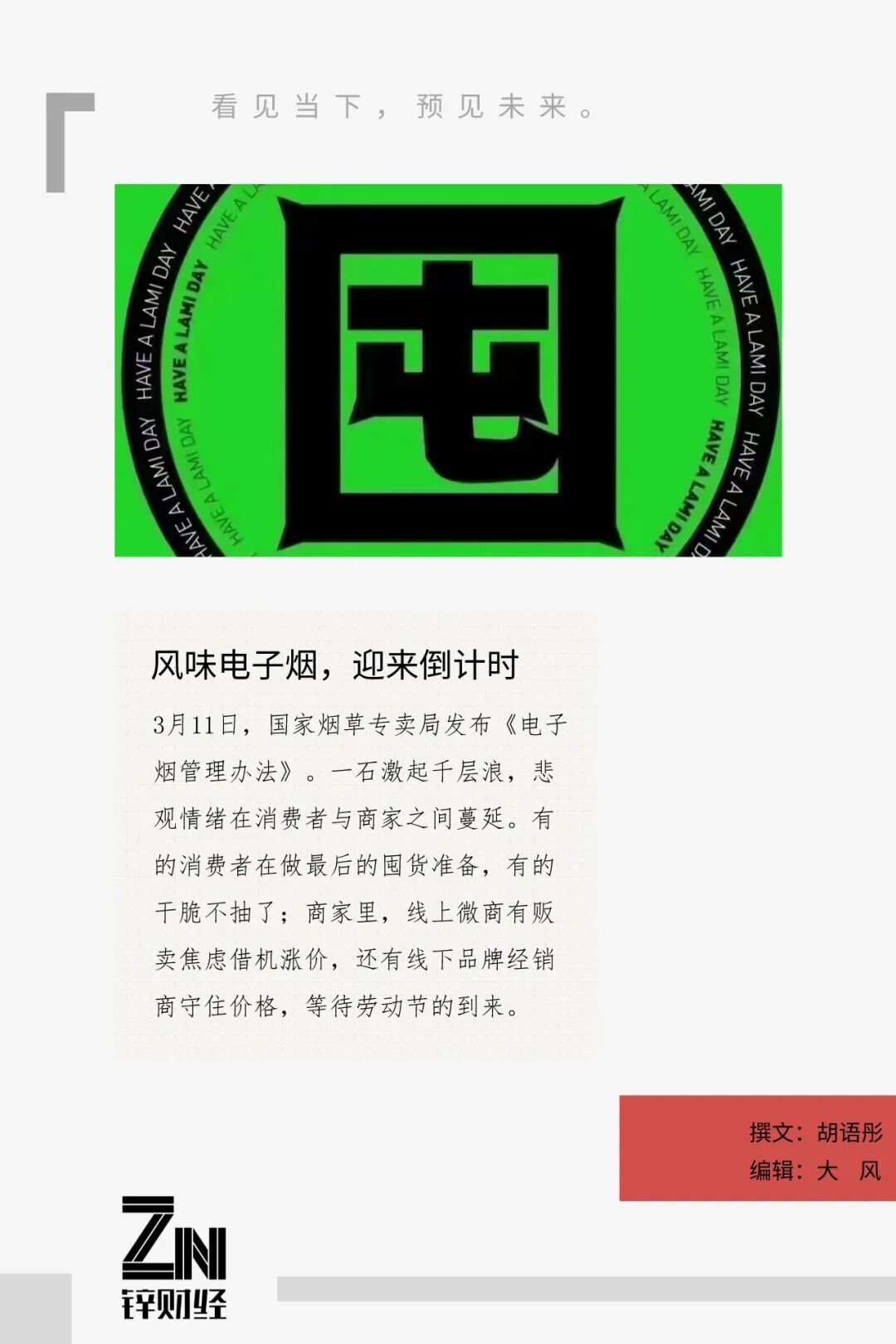 3月11日,国家烟草专卖局发布《电子烟管理办法》,明确指出:从5月1日起,禁止销售除烟草口味以外的调味电子烟和可自行添加雾化物的电子烟。