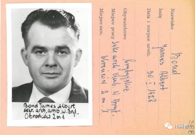 虽然只是作品中虚构的人物,但在波兰国家铭文院(IPN)的保管文件中发现了有关詹姆斯·邦德的文件。看来,英国情报机密部确实派了一位与那位著名特工同名的人物,作为间谍前往当时还是共产主义的波兰。 1964年2月,詹姆斯•阿尔伯特•邦德带着妻子和6岁的儿子从英国德文来到波兰华沙,表面上是为了担任英国大使馆秘书兼文书员的任务。 在任期间,邦德与当地秘密情报部(SIS)的职员一起多次出差到波兰东北部,据说这是为了收集军队相关设施的情报。 作为英国外交官,邦德受到了当地内务部第二部(反间谍部门)的监视,对他的言行进行密切的关注。 但据记载,邦德上任不到10个月就把家人送回了英国,几周后他自己也离开了华沙,再也没有回来。