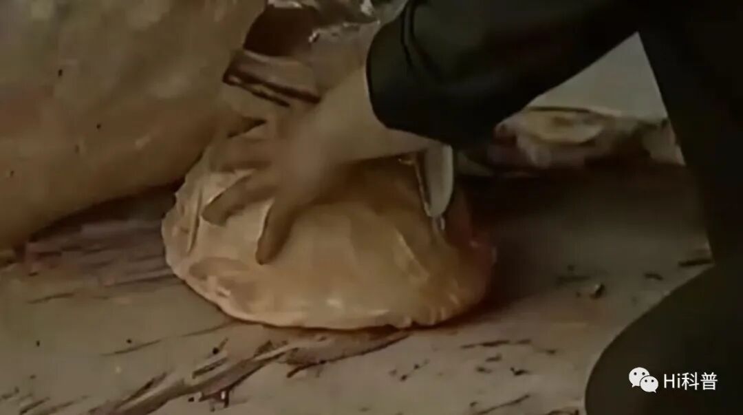 这一天,当他像往常一样宰牛时,却在牛肚子里发现一个足球大小的肉球。肉球生在牛的胆囊位置,桂宝明用刀挑开外层表皮后,发现流出的不是胆汁,而是一些黄水,难不成这是传说中的中药至宝——牛黄?桂宝明早就听说过,牛胆囊里有牛宝,但他杀牛十多年,虽然每次都仔细检查胆囊,却从来没有发现过有牛宝的存在。