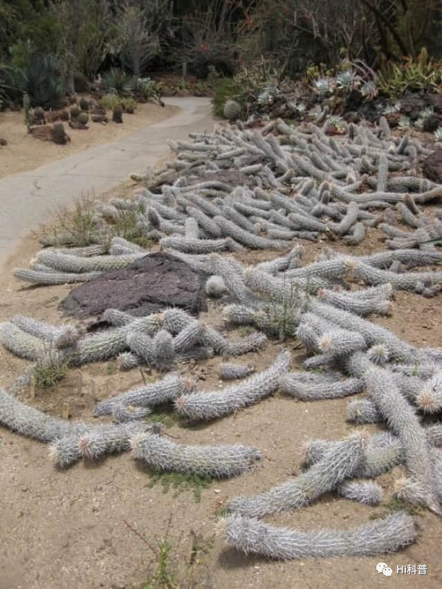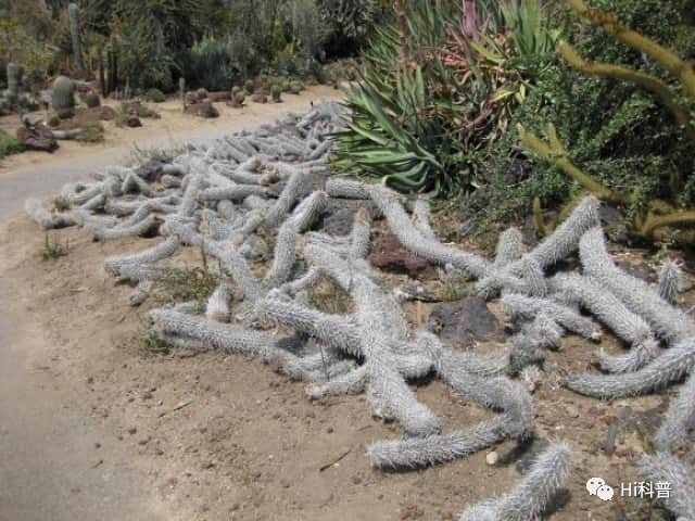 在沙漠中能够爬行的仙人掌,堪称匍匐在地上的恶魔。在墨西哥西北部的下加利福尼亚,有一种奇特的仙人掌。在当地被称为“爬行的恶魔”,它平躺在地上,长大后不会分支,只有一根主干。它将枯萎的身体的一部分切割掉,生长出新的部分,以此在沙漠中移动。