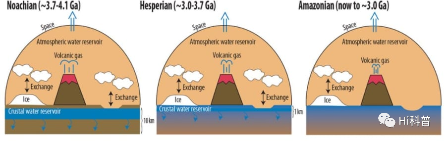 因为有这样的循环,地球上的水即使被地壳吸收也不会干燥。但是,火星上没有活跃的构造板块,火山和地壳的活动也几乎停止。因此,一旦水被地壳吸收了,就不会再被送回地面,因此火星逐渐变得干燥。研究团队认为,通过这一过程,过去火星上30 ~ 99%的水被封存在矿石中。虽然感觉预测的范围很广,但这是因为初期火星的大气组成和火山活动等详细条件尚不明确。这个新模型推测火星开始失水大约是在41亿~ 37亿年前。并且预测火星很有可能在30亿年前就已经失去了水,变得相当干燥。
