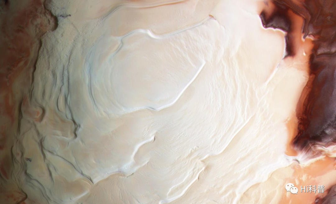 火星南极地区发现3个“冰底湖”!火星上发现生命的日子越来越近了? 三个湖和围绕着它们的小池塘。火星的南极被冰覆盖着。