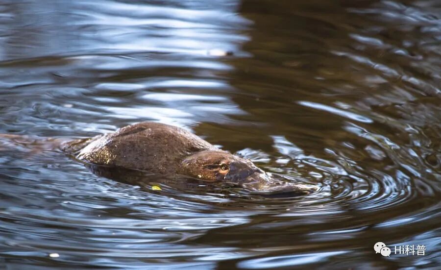 一个像鸭子一样的喙,因此而得名鸭嘴兽的名字来源于它的外形酷似鸭子的喙,四足身体上的大而扁平的喙非常醒目。这种鸭嘴兽的喙在外观上类似于鸟的喙,坚硬。鸭嘴兽用它的喙寻找食物,这样做的方法确实很独特。鸭嘴兽的喙部有神经,可以感知流经生物的电流,并利用这些神经捕捉隐藏在河床中的小鱼、虾和贝类等猎物。因此,鸭嘴兽虽然适应水,但游泳时不会睁眼。此外,鸭嘴兽的喙中没有牙齿。人们认为这是因为牙齿成为了感知电流的神经发育的障碍,因此它们退化了。拥有可以杀死小生物的毒液