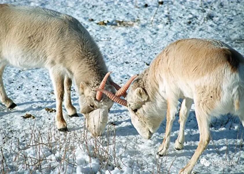 每年秋末冬初的时候,中亚地区的荒漠草原开始下雪,高鼻羚羊就会换上白色的冬装,开始一年一度的交配活动。