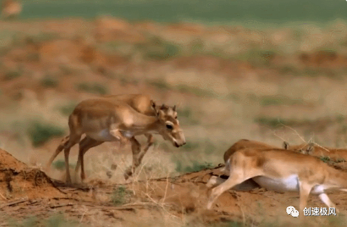 高鼻羚羊生活的荒漠草原上环境恶劣,天敌狼群的数量也不少。为了延续种群,它们就进化出了非常强悍的繁殖能力。