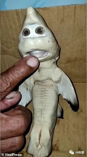 当地渔民,对在印度尼西亚海岸捕获的闹鬼的“人面鲨”感到困惑。在印度尼西亚东努沙登加拉的Rote Ndao海岸捕获了一条长着鬼脸的畸形鲨鱼。48 岁的当地渔民阿卜杜拉努伦发现了它,他说:“它是从被网捕获的鲨鱼妈妈的肚子里出来的。 ”