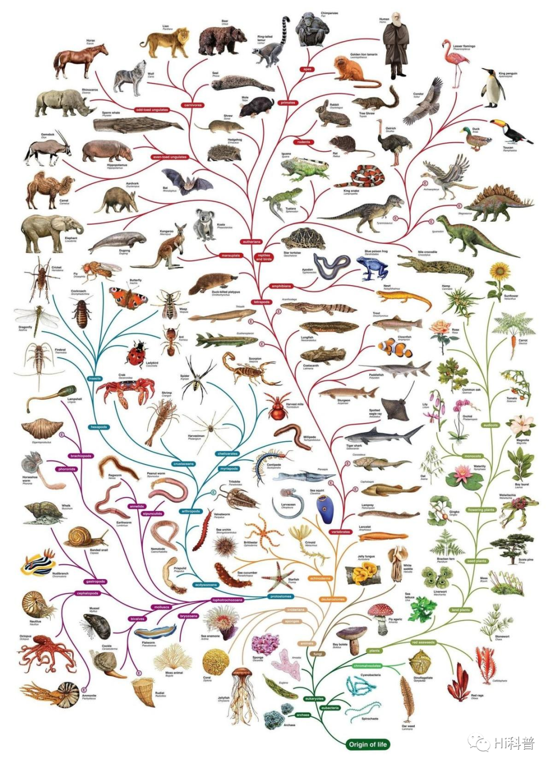 后来又过了数百万年,海洋中演化出了脊椎生物。其中一些脊椎生物离开海洋,走向大陆演化出了一些四足形状的陆生脊椎动物。后来又演化出了爬行动物,之后是哺乳动物,再后是灵长类动物,灵长类动物中又演化出了古猿。
