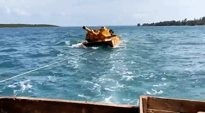 总之说什么的人都有,但这些说法里,最合理也最有可能的却是,退役坦克扔进海里时,由于操作失误,内部没有灌入海水,才漂浮了起来。最后一路摇摇晃晃,来到了印尼南海附近。