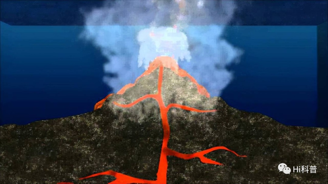 当海平面出现变化,或者是暴雨、地心活动剧烈、地表发生剧变等,都有可能导致火山喷发。 而喷发后岩浆只有高温,并不会产生明火,与海水接触后,相当于两种液体融合,好比冷水中加入了热水一样。岩浆表面会快速冷却,包裹着未冷却的岩浆,继续朝着海底出发。