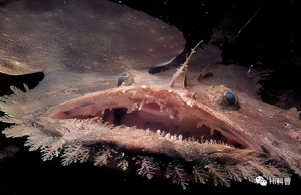 检查安康鱼的尸体时,发现巨型安康鱼的身体上附着了类似蠕虫的小生物。奇怪的是,这只小虫状生物的尸体竟然和安康鱼融合在一起,仿佛是安康鱼身体的一部分。这种奇怪的生物最初被认为是一种寄生虫,但进一步的调查发现了一些令人惊讶的东西。这种像寄生虫一样附着在身体上的微小生物是雄性安康鱼。在鱼类世界中,雌性体型较大的情况并不少见。更大的身体可以产生更多的后代。但是,雄性和雌性安康鱼的体型差异太大。雌性可以长到40厘米长,而雄性只有4厘米。它看起来不像是同一种鱼,难怪发现者把它误认为是寄生虫。雄性安康鱼不仅很小,它的生态也很奇怪。雄性安康鱼咬住雌性的身体,像吸血鬼一样,从雌性身上吸收血液并吸收营养,它真的像寄生虫一样。