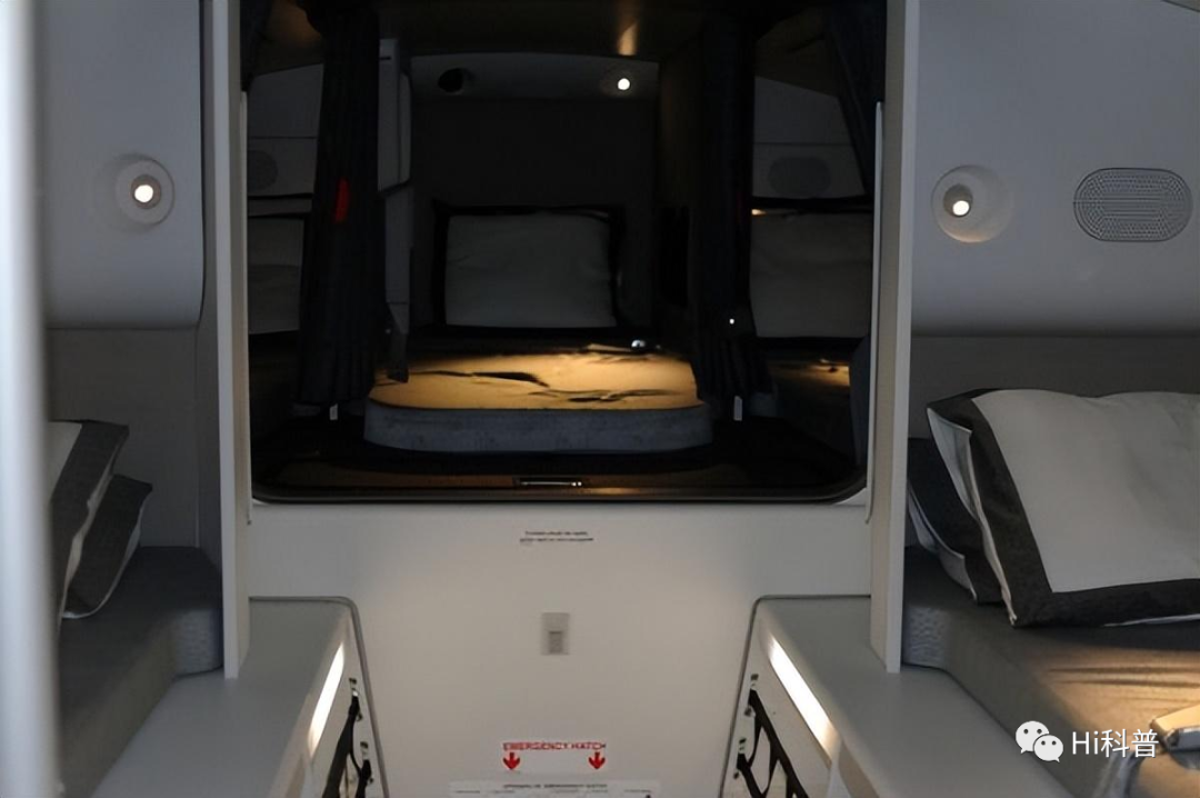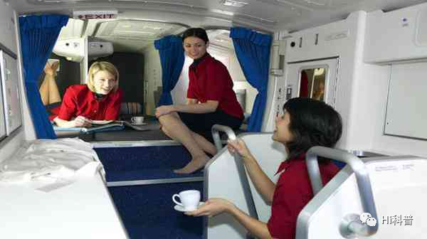 这两种方式虽然比较直接,但不太正经,最正确的方式应该是去卧室睡。其实,如果是飞长途,飞机上是有专门的空间留给飞行员和空姐们作为卧室的。只是它们要么在头等舱上方或者在乘客舱的后部区域,再或者是客舱与货舱之间,由一条隐秘的小道进入,进入前往往需要密码,一般的乘客是不可能知道在哪里的。 虽然空间小,但是设施还是蛮完善的。它们会配备好床、床帘、物品收纳盒、阅读灯等“宿舍神器”,同时还会设有通风口、猫眼和对讲设备,方便机组工作人员在休息时还能观察到机舱情况。也方便有特殊情况,随时接受传呼。