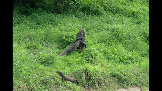 圆鼻巨蜥属于巨蜥科、巨蜥属的大型爬行动物,体型巨大,长达1.5米左右,四肢粗壮,足尖具有锋利细长的“五爪”。因此我国民间将圆鼻巨蜥称作“五爪金龙”,可见身份地位很不一般。不过,圆鼻巨蜥在东南亚虽然数量丰富,但是在我国境内的野生种群已十分稀少,处于极度濒危状态。野生圆鼻巨蜥营独栖生活,领地意识极强,每只巨蜥都有自己的领地范围,一般不会主动碰面,除非是繁殖季。这两条打架的雄性圆鼻巨蜥,就是为了争夺领地才发生了斗争。