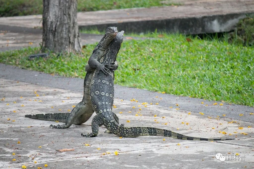 据目击者描述,他停车在路边观察了至少30分钟,这对巨蜥才终于“分手”离开。期间它们还有左右摇摆,弯腰倒地的动作,好似在跳双人舞一般。路过的司机被这场奇观吸引,纷纷停车拍照,甚至造成了短暂的交通堵塞。就在大家调侃这对巨蜥的恩爱画面时,生物学家对此做出了解释,并给热情网友泼了一盆冷水。原来,这对巨蜥根本不是什么情侣,而是两条在打架的雄性圆鼻巨蜥。