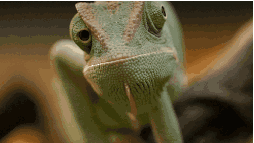 不过,自然界里有一种动物和猫头鹰完全相反,它的眼睛不仅可以转,还可以两个眼睛分别转向不同的方向,看起来就像是机械装置一样,这就是大名鼎鼎的变色龙。