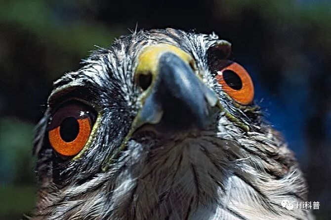 另外,像雕、鵟、鹫这样白天活动的猛禽,它们的视野是类似球形的,范围宽广,并且眼球内负责处理光信号的细胞比人类多了很多倍,换算成人类视力,那就是站在五十米外都能看清视力表最后三行,甚至有记载称老鹰在十公里外都能准确发现山坡上的小羊。