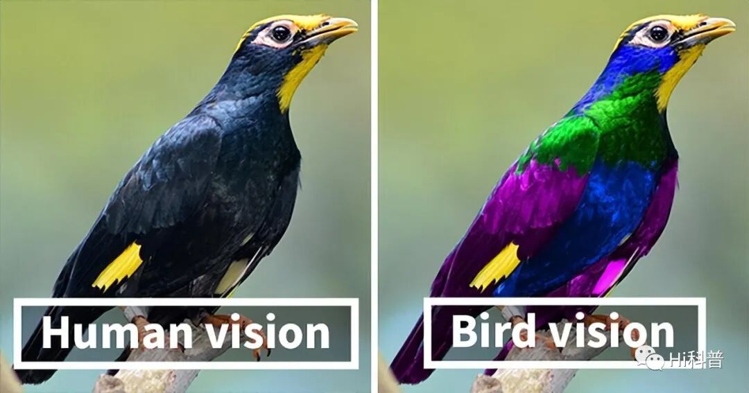 左:人类看到的鸟 右:鸟看到的鸟(示意图)