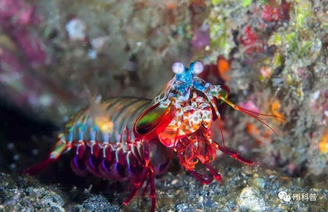 大量分布在太平洋温暖海域的螳螂虾,因为体色鲜艳多彩,又被叫做七彩螳螂虾、孔雀螳螂虾,这种海鲜的眼睛里,大部分都有十二种视锥细胞,少数螳螂虾甚至能分辨包括红外线、紫外线在内的16种颜色,真不知道它们眼里的世界该有多么灿烂。