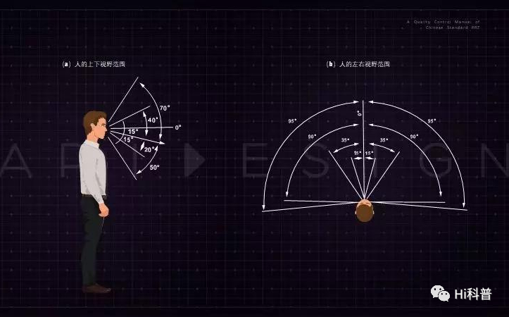 普通人双眼的水平视角最大能达到190度,两只眼睛重合的视角在124度左右,而清晰的视角范围只有60度,如果要专心阅读、看手机,那清晰的视角更是缩小到只有10—30度,超过这个扇形的范围所看的东西都是模糊的,也就是常说的余光。