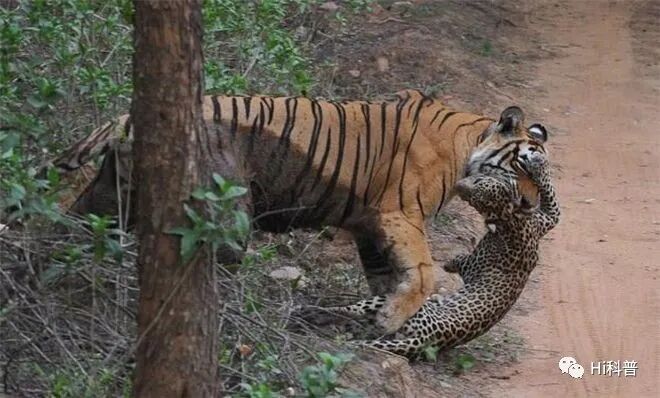 猫科动物有极强的领地意识,尤其是独行性猫科,它们对领地划分非常明确,如果有同类入侵就会遭到它们的猛烈攻击、驱逐,或者直接击杀。当然,猫科动物的生存竞争也包括食物资源,它们是不会和同类分享猎物的。所以在绝大多数情况下,猫科动物咬死同类后,会拖行一段距离,或者把尸体放在显眼的位置,就是为了向其他入侵者示威、警告。当老虎和花豹处于同一片生境下时,花豹会自动避让老虎的中心领地,在外缘活动。而且,花豹的食物和老虎也不同,它更倾向于捕杀小型猎物,有意识地错开老虎的食谱。可能这就是血脉压制吧。