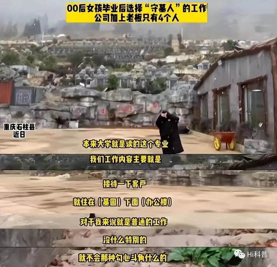 小谭本是一名普通的重庆女孩,但有一次她在社交媒体上无意分享了自己的工作日常后,瞬间成功出圈:天呐,00后小姑娘竟然在墓园工作!