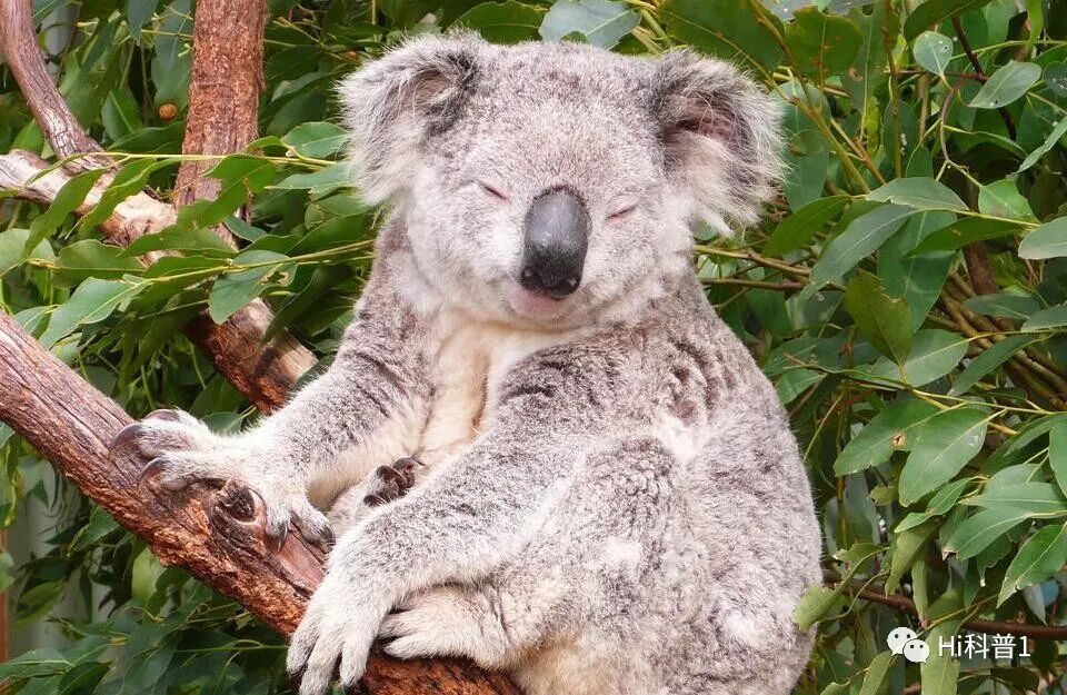 但实际上,这和它们的生活习性有很大关系。考拉生活在与世隔绝的大洋洲上,生存竞争并不激烈,所以进化得尤为缓慢,加上它没有多少攻击性武器,体型又小,因此走上了一条以退为进、能躲则躲的生存道路。为了避开食物竞争和领地纠纷,考拉选择进入桉树林里生活,以桉树叶为食,以桉树作为栖息地,一辈子都在树上生活,很少下地。桉树叶有毒、营养价值极低,所以基本没有其他动物会和它们争夺生存资源。为了适应“恶劣”的生存环境,考拉也进化出了一套独特的生存策略。第一,考拉的消化系统可以自行分离桉树叶的毒性物质,肝脏还可以分解一部分有毒物质;第二,桉树叶的营养成分极低,所以考拉需要进食更多的桉树叶,补充营养,再通过减少运动,降低能量消耗;第三,桉树叶的分解物中含有麻痹身体的化合物,所以考拉不得不花大量时间睡觉,调理自己的身体。原本,这种“生命在于静止”的生存模式,让考拉过的无忧无虑,可是后来殖民者入侵,欧洲人发现了考拉,将它们大量逮捕杀戮,导致其野生种群数量锐减,从千万只降到了不足10万只。