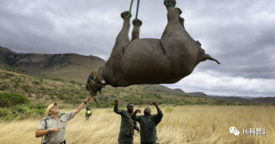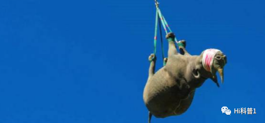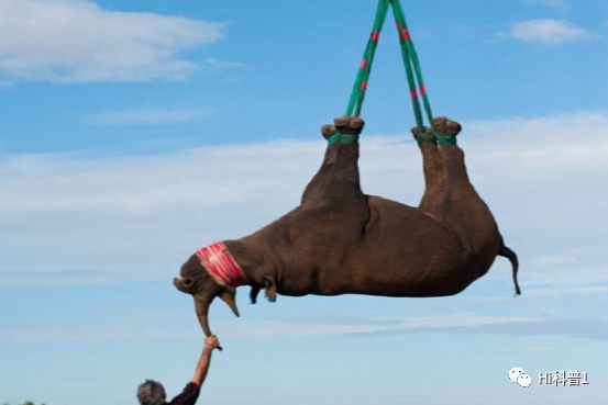 犀牛倒吊在飞机下运输是一项技术含量高、难度大的运输方案,但也是目前最为可行的运输方式。如果能够正确而安全地进行这一操作,对于犀牛生存与繁衍的保护具有不可估量的作用。