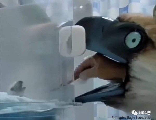 为了拯救濒临灭绝的菲律宾雕,伪装成亲鸟喂食保护中心职员。生活在菲律宾的菲律宾雕濒临灭绝,目前能确认的一对不到400对。它们是世界上最稀有的猛禽之一。 菲律宾鹰中心正在救助菲律宾鹰,进行保护和康复活动。同时为了将雏鸟放归野生,采取了各种各样的措施。 工作人员为了尽量减少与人的接触,手上戴着亲鸟面具,正在给雏鸟喂食。 菲律宾雕是全长1米左右的猛禽类,其长度和翅膀面积是目前在世的雕中最大的。头上有美丽的冠羽。 尽管是森林中最强大的捕食者,但种群数量却急剧减少,其原因是由于森林采伐造成的栖息地破坏,以及用于食用、饲养、展示的滥捕等。