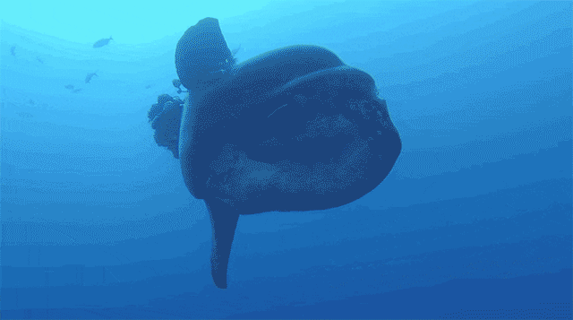 它的身体呈椭圆形,脑袋就占了一大半,背鳍和胸鳍也十分宽大,像一对翅膀,不过尾部很短,没有真正的尾鳍。由于翻车鱼在游泳时,呈“躺平”状,所以看上去就像一块被吃剩的大鱼头飘在海里。如果只看图片,大家可能无法预估它的大小,实际上翻车鲀的体型跟大白鲨差不多,体长可达3-5.5米,体重可达1.4-3.5吨,是个妥妥的“巨无霸”。按理说,捕到这么大的鱼,渔民应该开心才对,为什么还要把它放生呢,甚至还颇为“嫌弃”?首先,翻车鱼的肉并不好吃,和金枪鱼、三文鱼没法比,它看似肥厚的身体,实则覆盖着厚厚的胶质层,真正的鱼肉部分,肉质也不佳,完全没有海鱼的鲜美口感。虽然日本和我国台湾地区,有食用翻车鱼的鱼肉和鱼肠的饮食习惯,但是这些能吃的部分不到1/10。绝大多数被捕捞的翻车鱼,要么被拿来磨成鱼粉,制作饲料;要么取其肝和脂肪炼制鱼油入药,据说可治疗跌打损伤和烫伤。但是内地很少有人吃翻车鱼,或者捕捞翻车鱼,大概是觉得运输成本太高了,不划算。