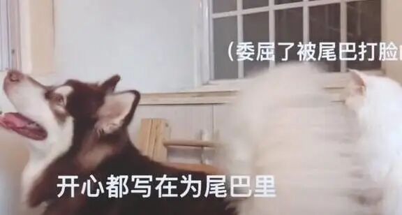 主人带它回家之后,家里的原住民——阿拉斯加特别开心。阿拉斯加在猫咪的身上嗅来嗅去,对它疯狂的摇尾巴。像是在说:“我终于有猫了”猫咪虽然非常嫌弃这只狗,但是它并没有进攻击狗狗。