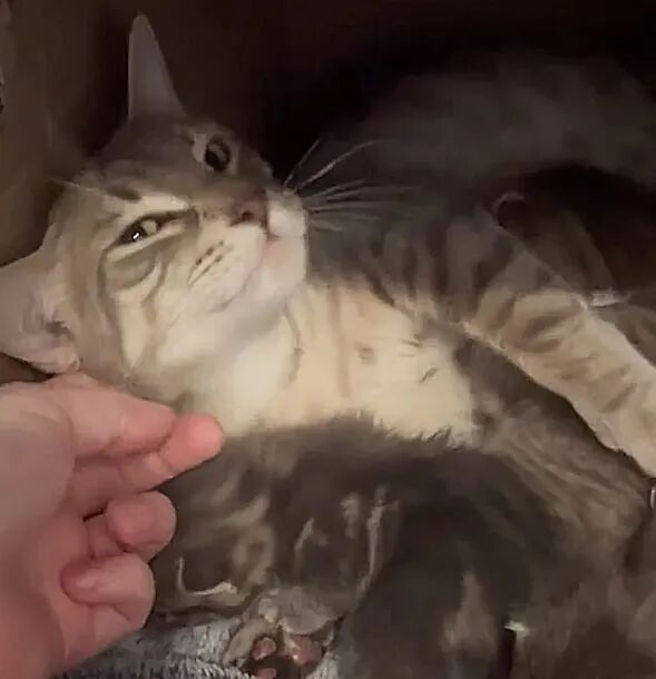 某天晚上毫无预兆地,猫妈安静地生下宝宝,第二天网友惊喜发现箱子里,多了6只可爱的宝宝~
