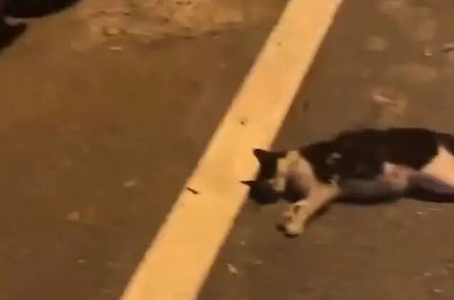 画面显示,这名男子牵着一条比特犬,旁边还跟着一条未牵绳的狗,在路人的呵斥之下,加速逃离现场。而在镜头的这一边,有一只猫咪已经横尸街头。而据这位拍摄视频的女子介绍,这只猫咪之前是流浪猫,后来被一家咖啡店喂养,并且已经怀孕了。