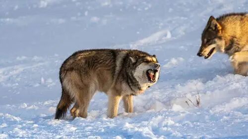 公狼们虽然体型庞大,但面对那只母狼的狠劲和机敏,显得有些束手无策。母狼利用自己的速度和灵活性,不断躲避公狼们的进攻,同时展开反击。