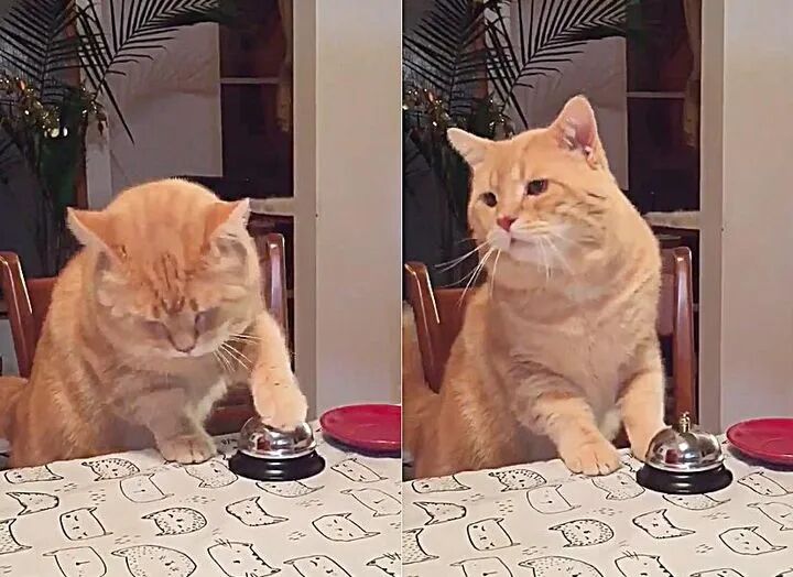 当它的新主人给他带来晚餐铃时,它尝试带着它去了外面玩耍。但很快,莱昂就想通了,通过敲响铃铛,它的人类主人会给它带来美味的食物。于是它很快成为一名专业的“敲钟喵”。