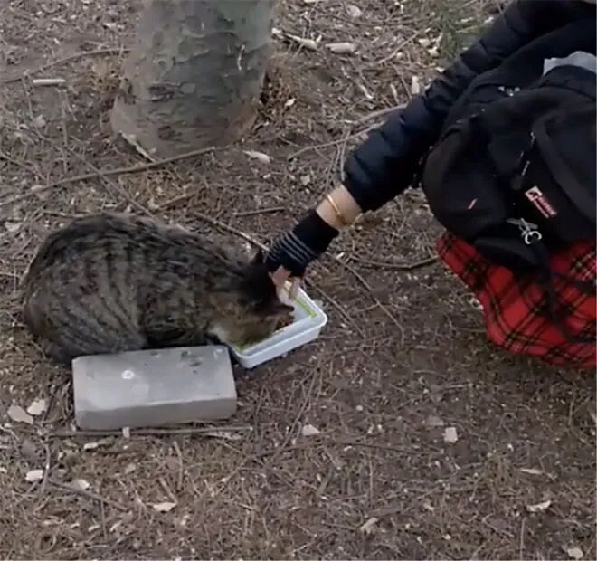 阿暖喂食的主要是一些流浪猫,因为平时自己一个人租房住,难免会感到孤独,没事的时候阿暖就到小区附近的公园里溜达,公园里人来人往,垃圾桶里每天都会有一些零碎的食物,所以有不少流浪猫在公园内聚集。