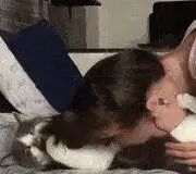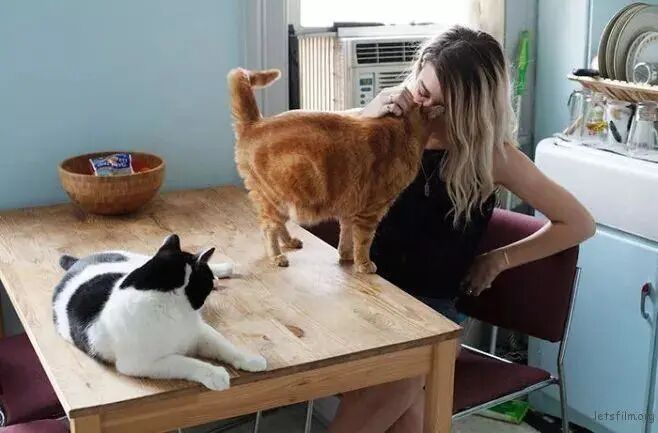 喜欢亲女主人的,还有这只橘猫,亲完还要用头蹭蹭,一副享受的样子。