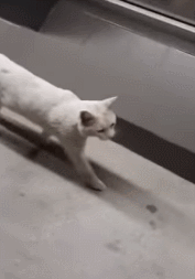猫咪突然站起来,慢慢往超市的方向走。不知道猫咪想要干嘛,她也跟着一直走,还帮它打开超市门。
