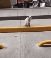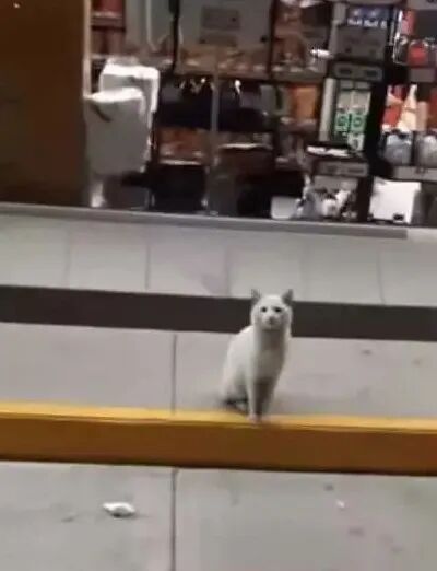 墨西哥女子,这天在散步的时候发现一只白色猫咪站在超市前面,坐姿非常端正,让她十分好奇。