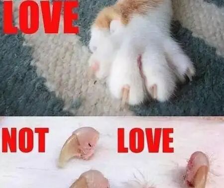 带猫咪做这个手术,就相当把我们人类手指第一个关节部位全部切除掉,我们就可以想象到猫咪承受的痛苦了。