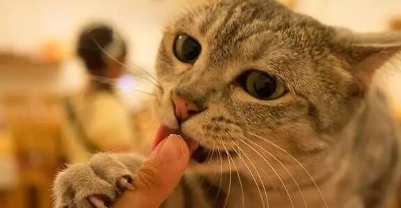饿了的时候,猫咪也会舔你的手,提醒你喂食