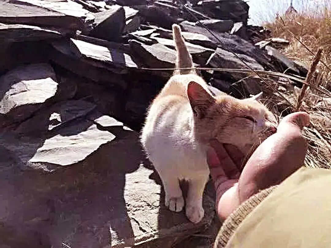 竟然有一只流浪猫,径直向小金走过来,让人意外的是,一般的流浪猫对人类都非常害怕(也许都是因为被人丢弃或是欺负的原因吧),但是这只流浪猫却“与众不同”,不仅不害怕,反而还有点喜欢眼前的小金。
