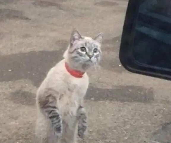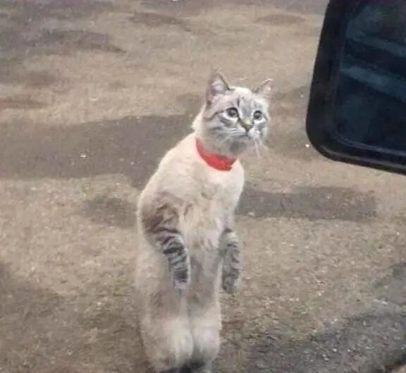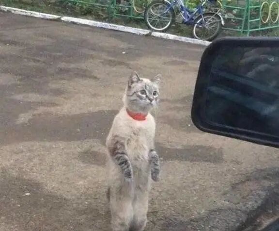 也不知道小花猫在这里站了多久了,它就这么望着,似乎就是在等着主人来安慰一下它受伤的心灵。画面真的是笑翻人。