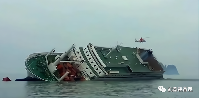 当这艘船沉没长达三年后,由于海水的腐蚀,船体破坏严重,想要对其进行打捞有着严格的要求。但振华30凭借自己强大的起重性能,最终中国企业同韩国签订协议,并且成功将这艘客轮打捞上来。