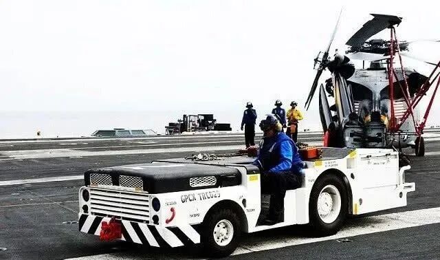 如今,航母研制技术得以成熟完善,但航母造价高、技术要求高,目前仅有10个国家拥有航母。众所周知,航母上真正发挥作战能力的是舰载机,航母只是一个平台。而航母甲板空间有限,不利于舰载机“倒车”,这时牵引车就出场了。牵引车的作用是帮助舰载机调头回到起飞位置,让它们整齐排序好,以最大限度利用甲板空间,同时保证甲板上的工作井然有序。