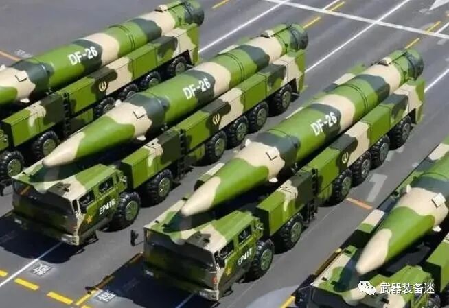 该导弹的射程大概在4000-5000公里之间,命中准度小于10米,打击速度18马赫,而东风26的弹头数量为6枚,使用动力冲击下,可以打击目标海上和空中设施及敌舰,对于大型舰艇的攻击能力具有很强的杀伤力。据悉,每个导弹旅下面设计有36台发射车。10个东风导弹旅一口气齐射,届时可以打出360枚导弹。