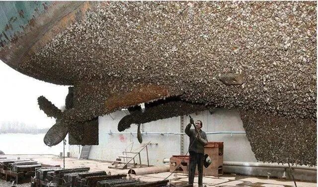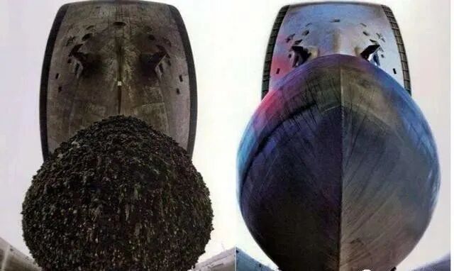 平常我们可以看到,航母每出任务一次回来就要进行维护,大伙都非常的好奇为何会这么频繁,关于这点大伙看看船底就懂了。航母在海里行驶的时候,会沾上很多的贝壳、海螺、微生物,航母出航一次怎么也得一个星期以上,故而船底就会黏上很多这些生物,它们的存在会影响到航母的行进速度,增加燃料的消耗速度。