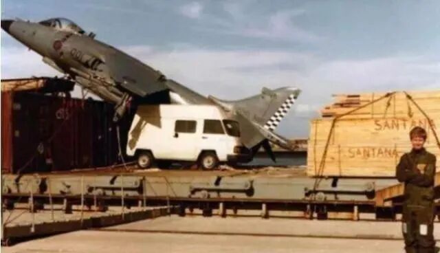在这样的情况下,英国飞行员急中生智,其深知无法将飞机飞回到陆地上的情况下,他瞄准了海面上的货轮,通过垂直起降系统直接降落到货轮上面,从而保住飞机的安全。就这样在一系列操作下,鹞式战机成功降到了货轮上,整体除了尾部受了点轻伤之外,战机完好无损,挽回了非常大的损失。