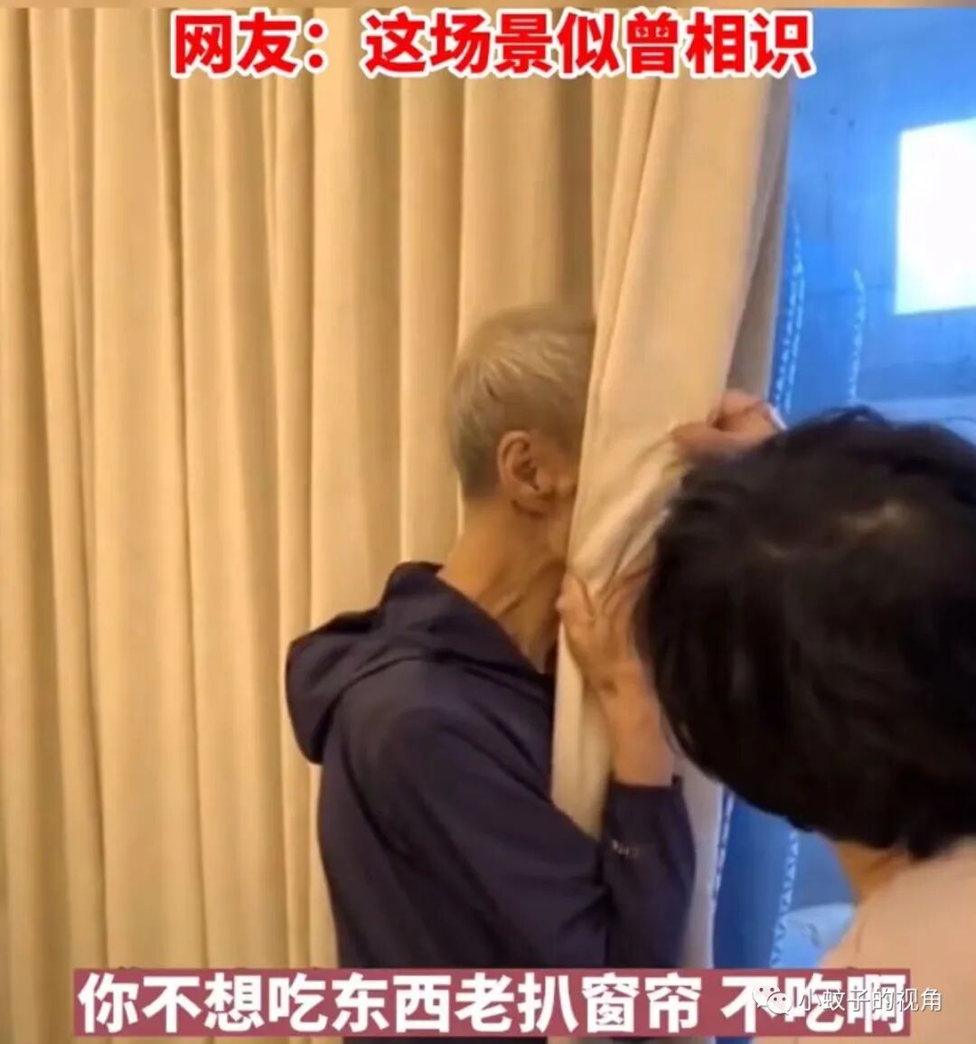 网友说:看到这一幕我哭了。这场景似曾相识!我外婆临去世的那一年也这样,跟孩子一样,说她她不听。思维、行动都跟孩子没有区别。