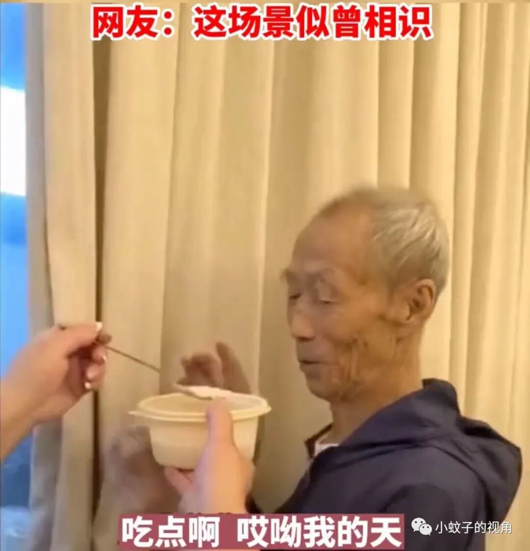 这位父亲也是如此,已经92岁高龄了,依然像个孩子一样需要女儿追着喂饭。老人举动令人吃惊:这场面好像似曾相识啊!