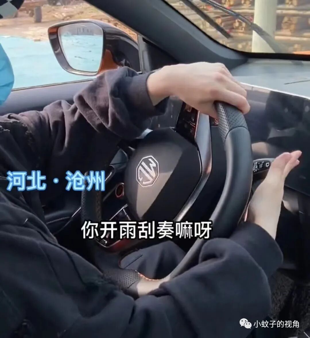 这一下,老公更着急了,对她喊:“你开雨刷干啥呢?打转向灯、转向灯……”。