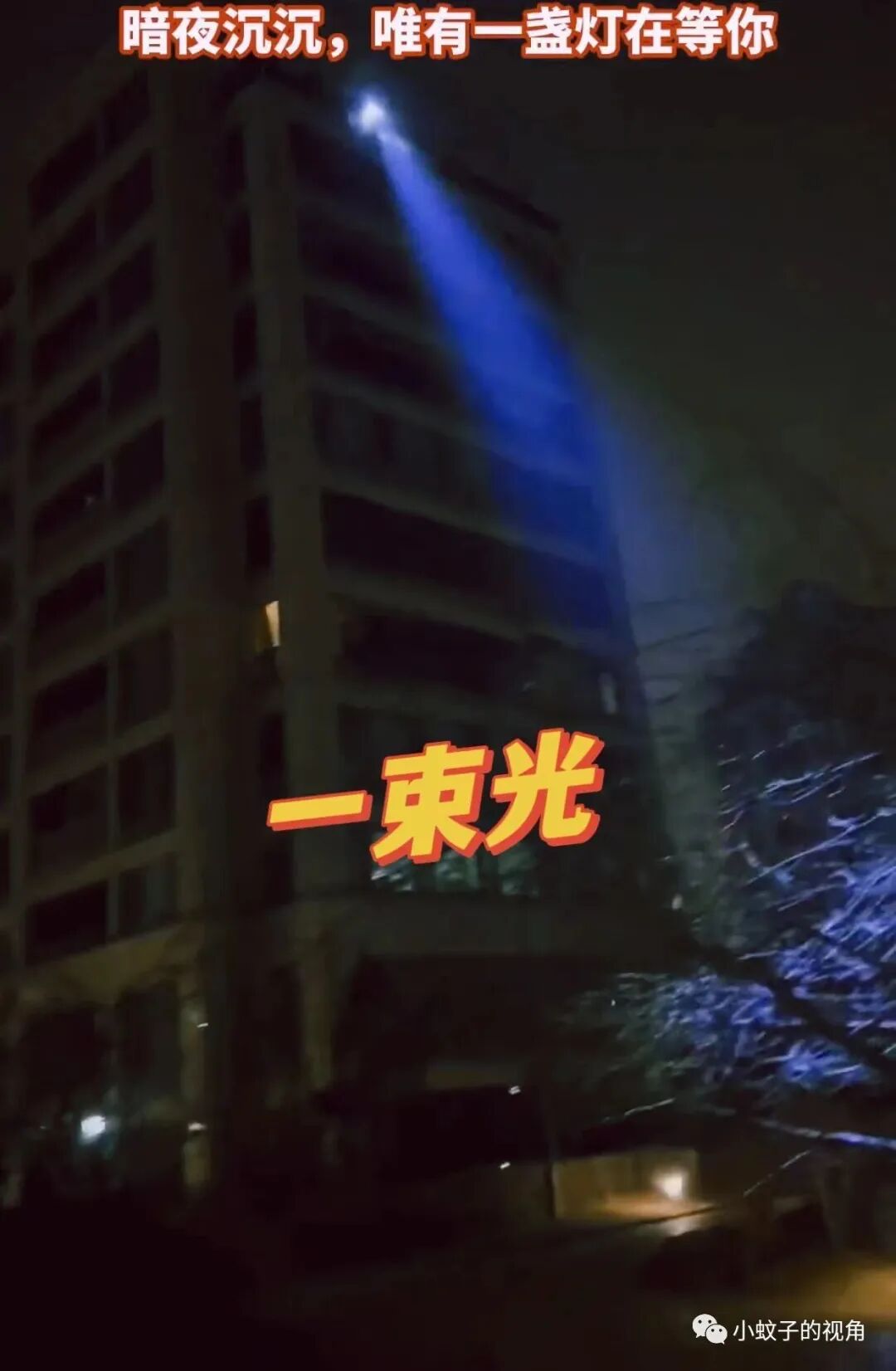 就像这位男子一样,虽然加班到凌晨很辛苦,但是在回家的时候突然看到楼上射下一条光,看到光束的来源,他笑了:这就是幸福!
